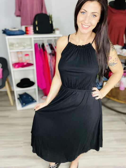 Black Sleeveless Maxi Dress w/ Back Tie Detail