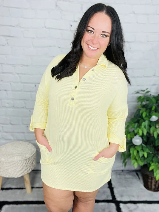 "Dressed for Comfort" Pale Yellow Dress - Reg/Plus