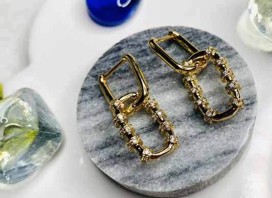 18K Gold-Plated Dangle Earrings with Cubic Zirconia Detail