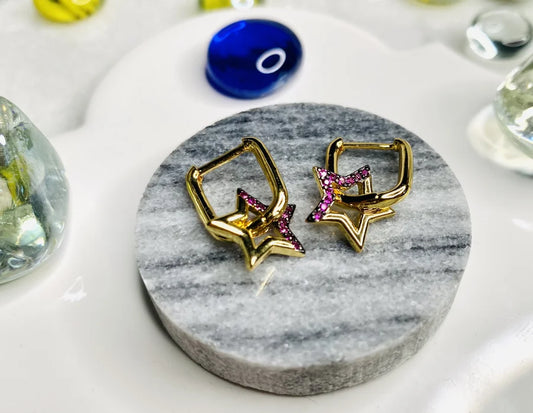 18K Gold-Plated Dangle Star Earrings with Pink CZ Crystals