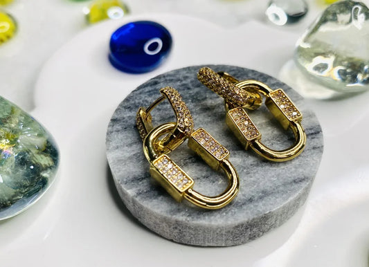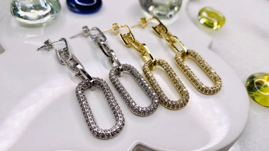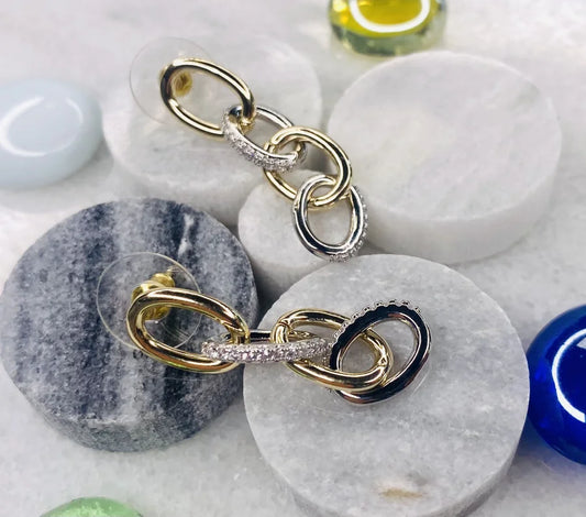 2-Tone Chain Link Earrings w/ Pave Cubic Zirconia