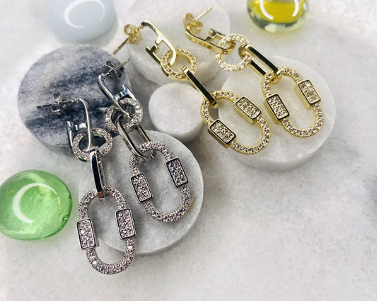 3-Link Dangle Earrings with Pave Cubic Zirconia Crystals