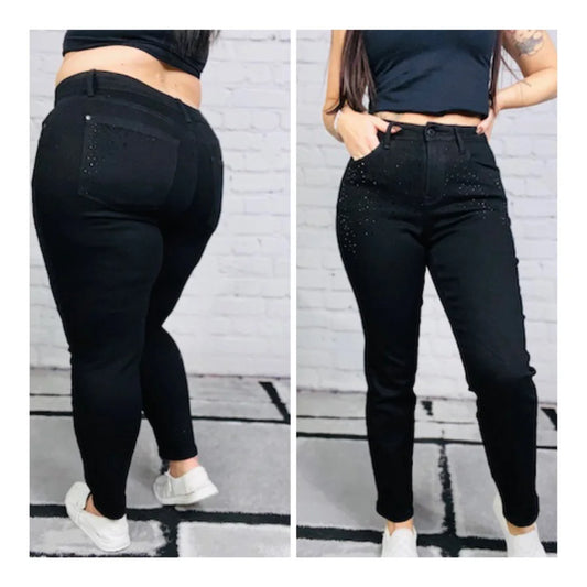 Judy Blue - "Giselle" Jet Black High-Waisted Rhinestone Studded Slim Fit Jeans