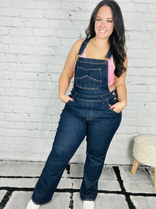 Judy Blue - "Bridget" High-Waisted Dark Blue Wide Leg Overalls
