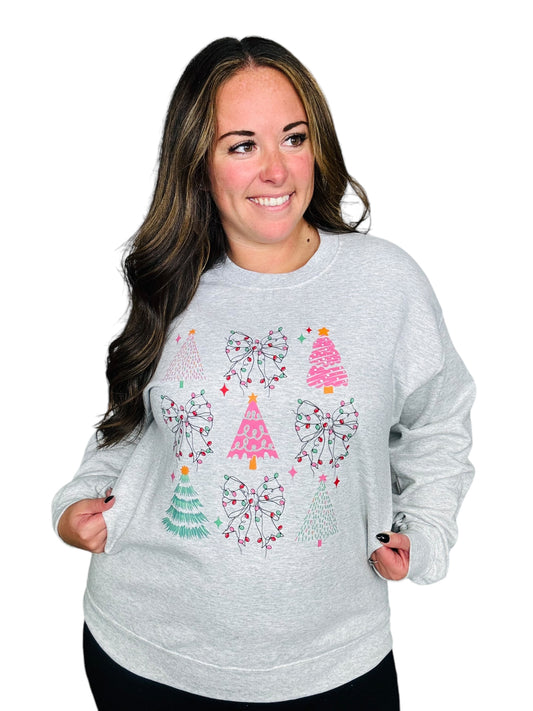 "Christmas Bows And Trees" Crewneck Sweatshirt