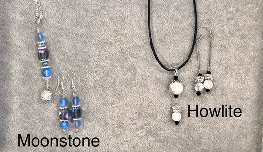 NECKLACE AND EARRING SET - MOONSTONE AND HOWLITE2