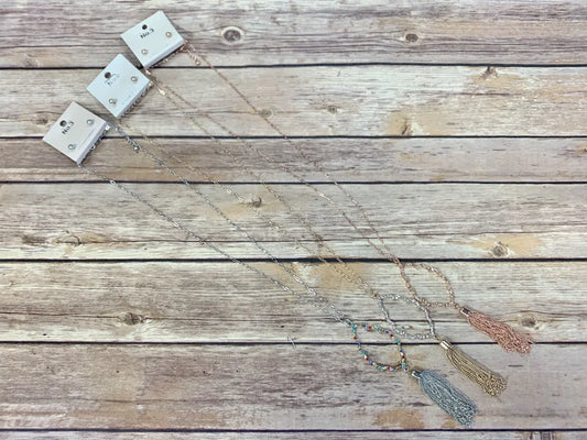 Oval Pendant w/ Tassel Detail & Stud Earrings