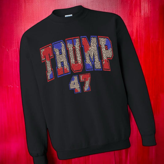 "Glitter Leopard Trump 47" Graphic Short Sleeve/Crewneck Sweatshirt