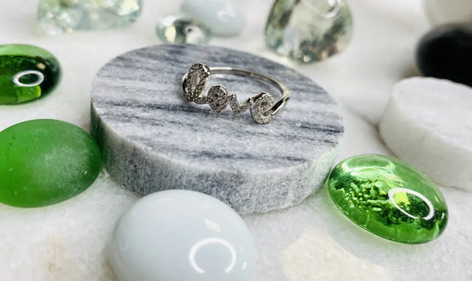 Sterling Silver w. Cubic Zirconia "LOVE" Ring