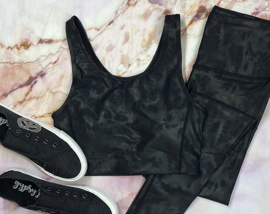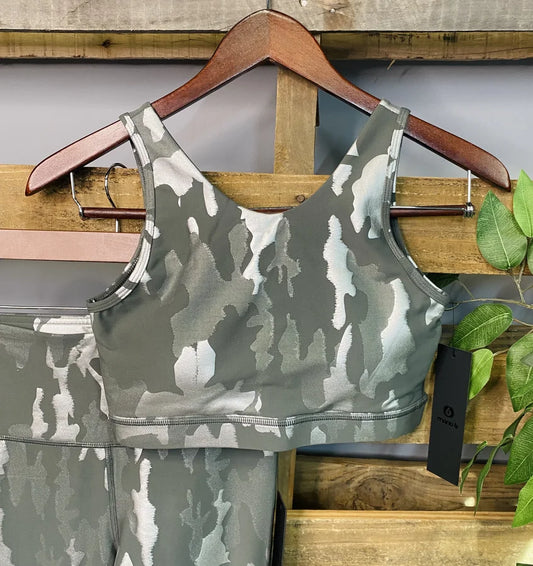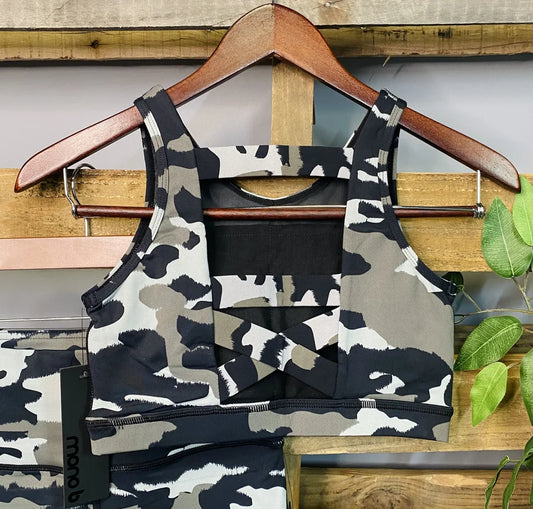 Mono B Smoky Grey/Silver Foil Camo Sports Bra w/ Criss-Cross Back