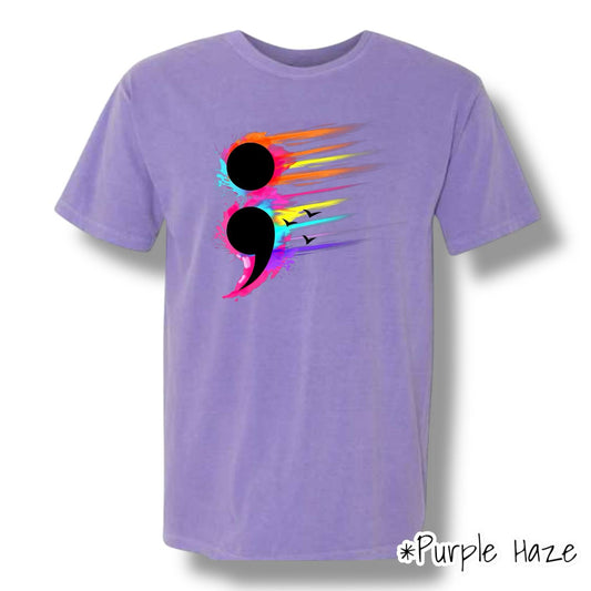 "Rainbow Semicolon" Front Print Only Graphic Short Sleeve T Shirt