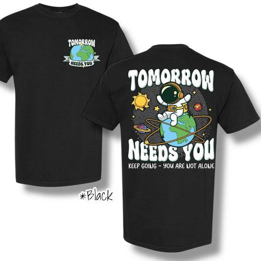 "Tomorrow Needs You 2.0" (Black Ink) Pocket Logo & Back Print Graphic Short Sleeve T Shirt
