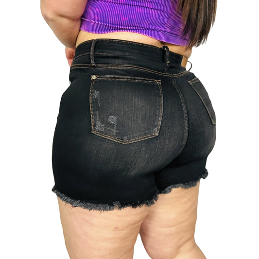 Judy Blue - "Carmen" Black High-Waisted Tummy Control Frayed Hem Shorts
