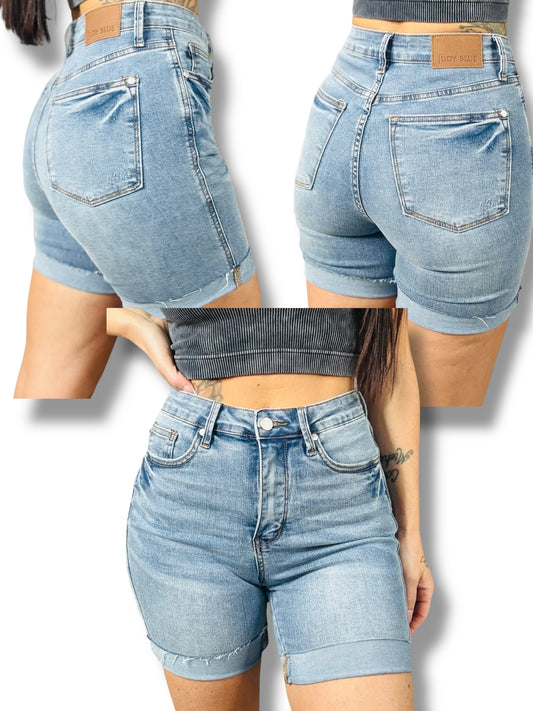 Judy Blue - "Cheryl" Medium Blue High-Waisted Cooling Tummy Control Shorts