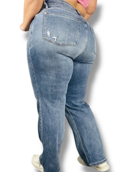 Judy Blue - "Marie" Medium Blue High-Waisted Tummy Control 90s Straight Leg Jeans