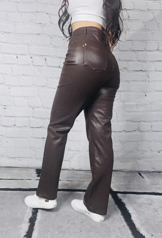 Judy Blue - "Rhonda" Espresso High-Waisted Tummy Control Faux Leather Jeans
