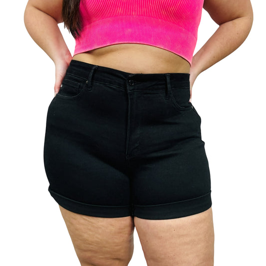 Judy Blue - "Sally" Black High-Waisted Tummy Control Cuffed Shorts