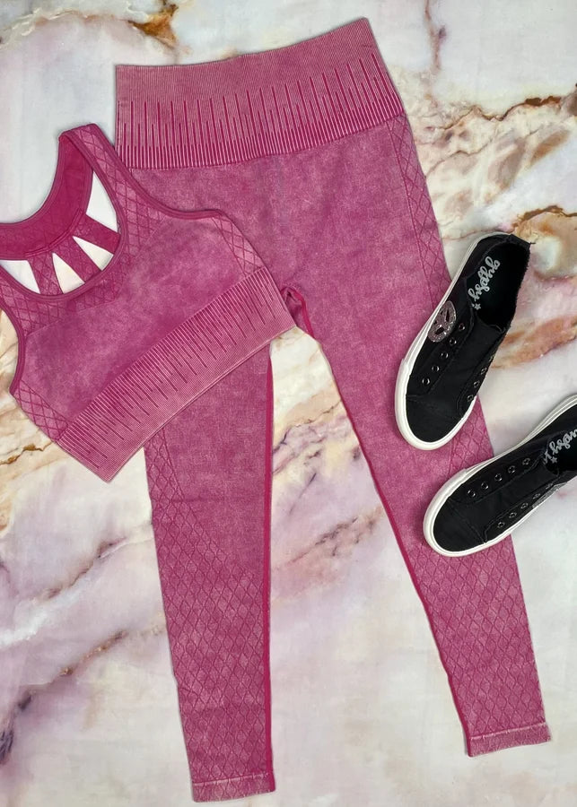 MONO B HOT PINK LATTICE SEAMLESS MINERAL-WASHED HIGH WAIST LEGGINGS
