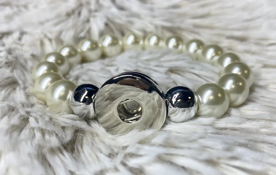 This gorgeous pearl bracelet can hold any regular size snap for added pizazz!