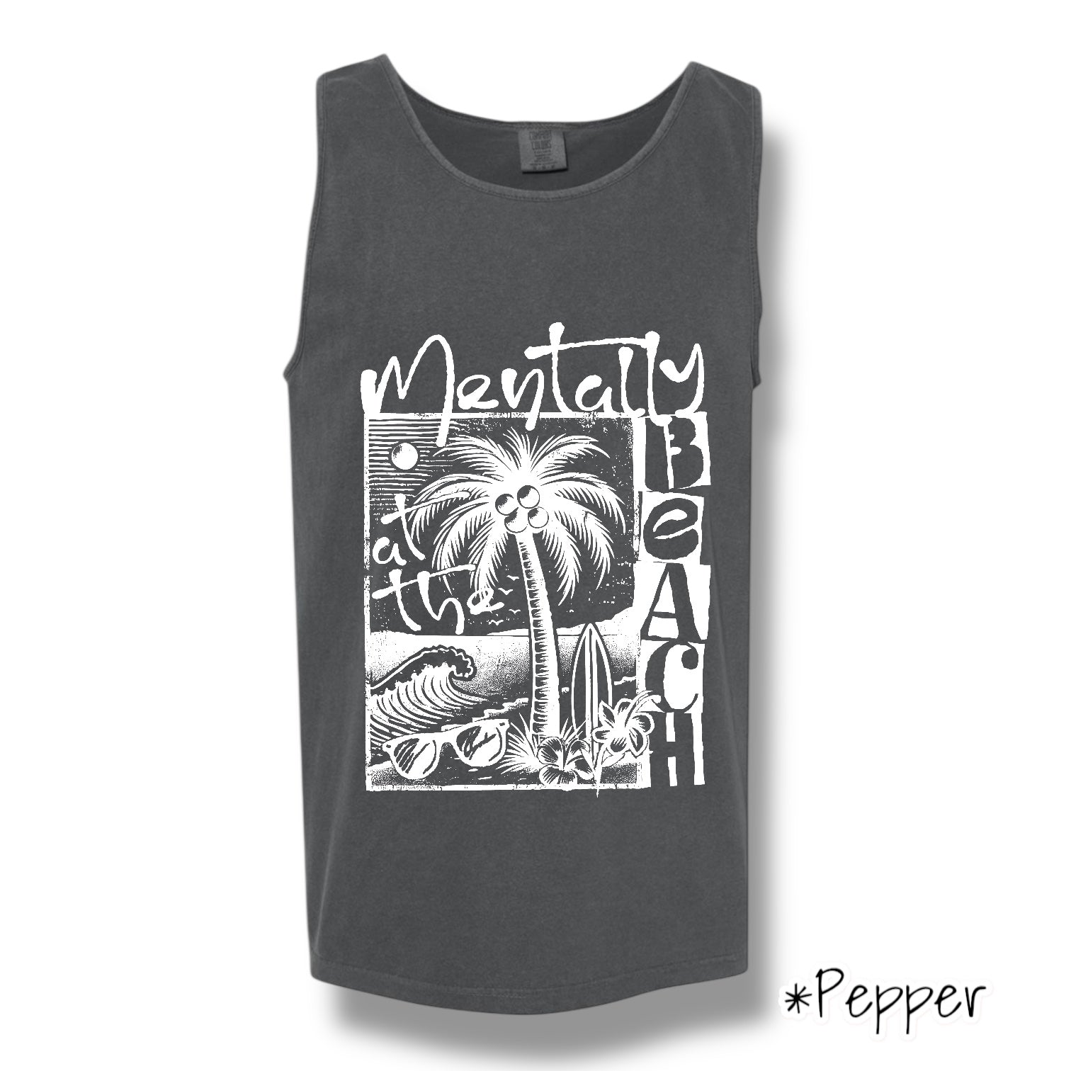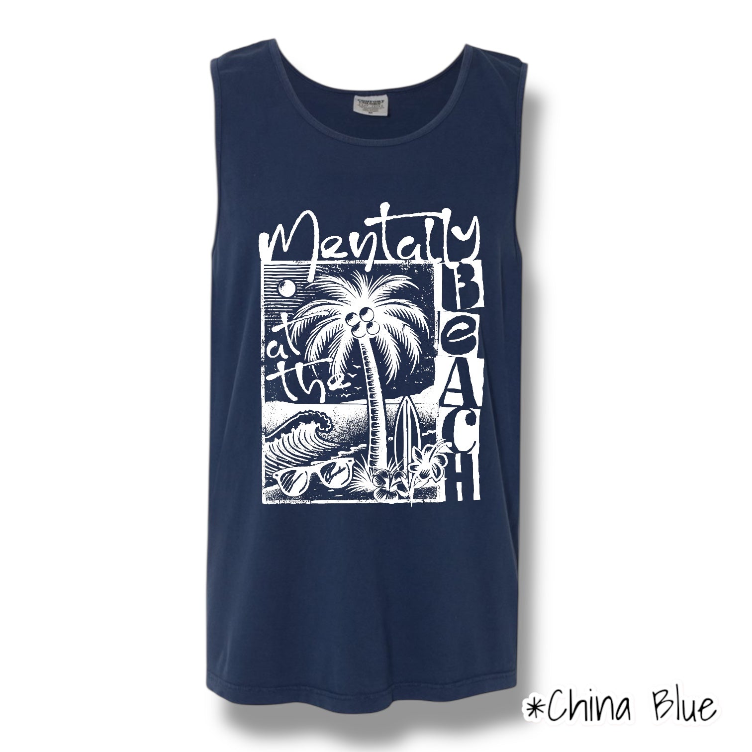 "Mentally At The Beach" (White Ink) Front Print Tank Top