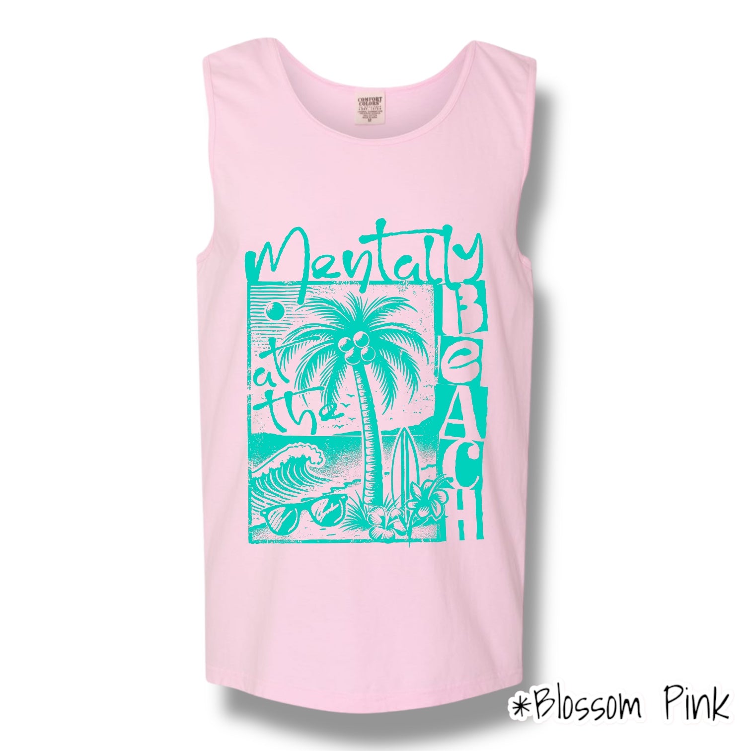 "Mentally At The Beach" (Teal Ink) Front Print Tank Top